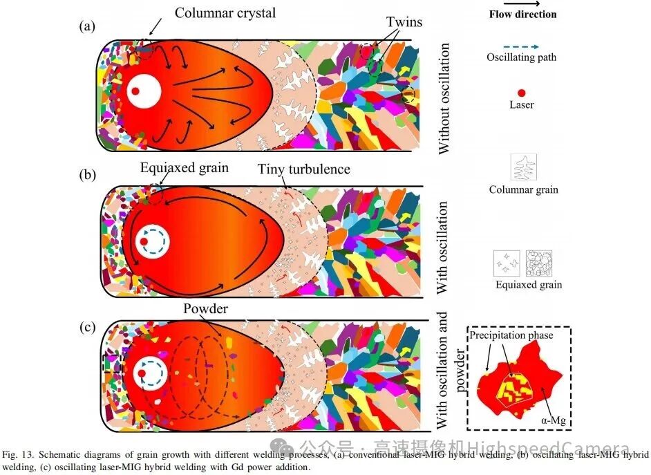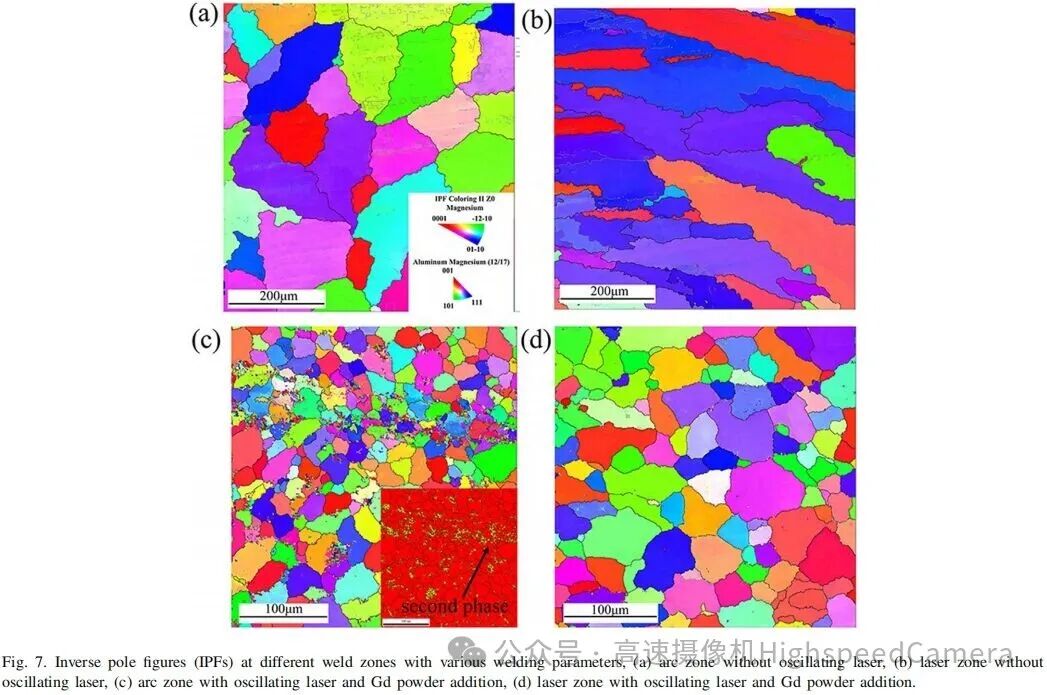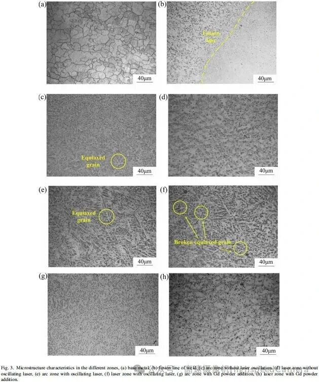 【1】与无振荡激光焊接相比,接头延展率提高了145.3%。振荡激光的搅拌效应和高熔点析出相(Mg,Al)2Gd的聚集导致了晶粒细化。