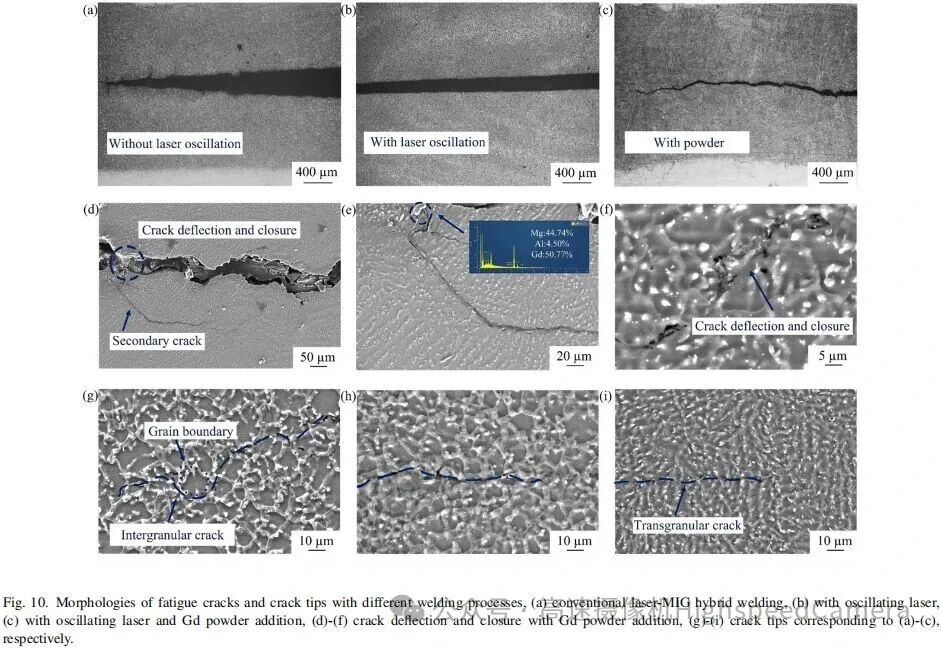 该研究研究了振荡激光和钆粉添加对激光-MIG复合焊接镁合金接头微观结构和力学性能的影响。基于晶粒细化和裂纹扩展行为阐明了延展性增强机理。主要结论如下:
