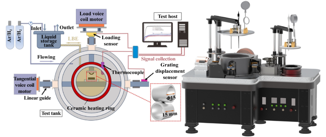 铅铋快中子反应堆作为小型模块化反应堆的重要发展方向,堆内涉铅铋构件面临由流致振动与铅铋腐蚀协同作用引发的微动磨蚀损伤,已成为制约其安全稳定运行的关键挑战之一。通过开展复杂苛刻环境微动磨蚀的实验模拟,系统研究多物理场耦合作用下微动界面的材料损伤机制,将有助于揭示微动磨蚀的本质规律,为铅铋快堆关键部件的抗微动损伤防护提供理论依据与技术支撑。