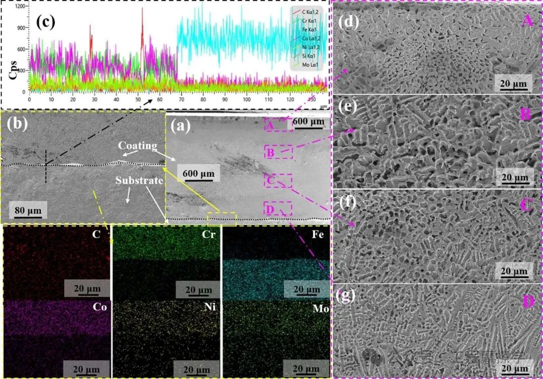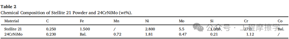1.涂层制备与工艺优化:采用Stellite 21钴基合金粉末,通过激光熔覆技术在24CrNiMo钢基体上制备涂层。为确保涂层质量,研究对激光功率、扫描速度等工艺参数进行了优化,以达到最佳的涂层硬度和结合强度。