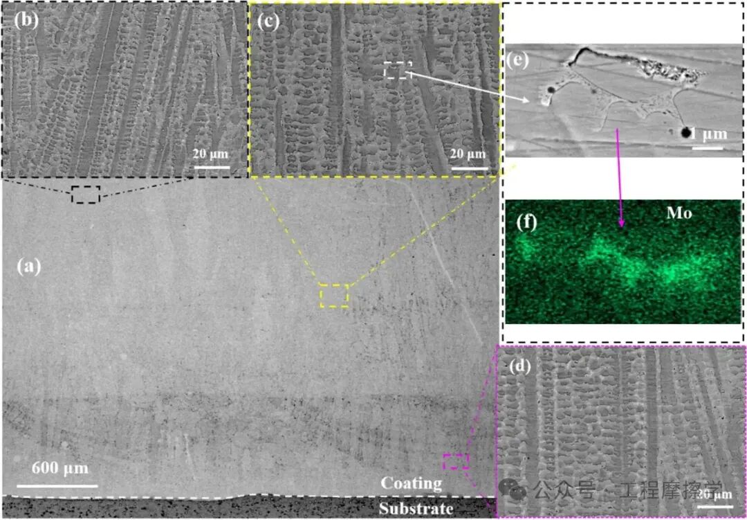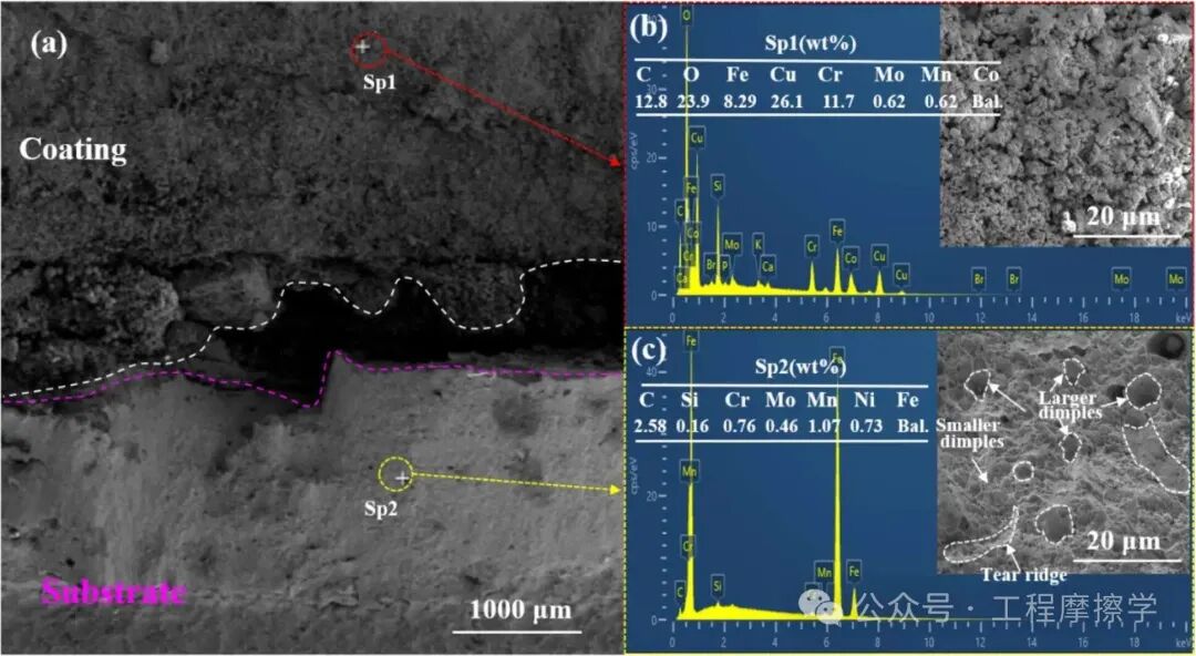 图14。涂层和基材微观结构(试验后):(a)涂层的低倍SEM形态,(b)涂层-基材界面的SEM形态