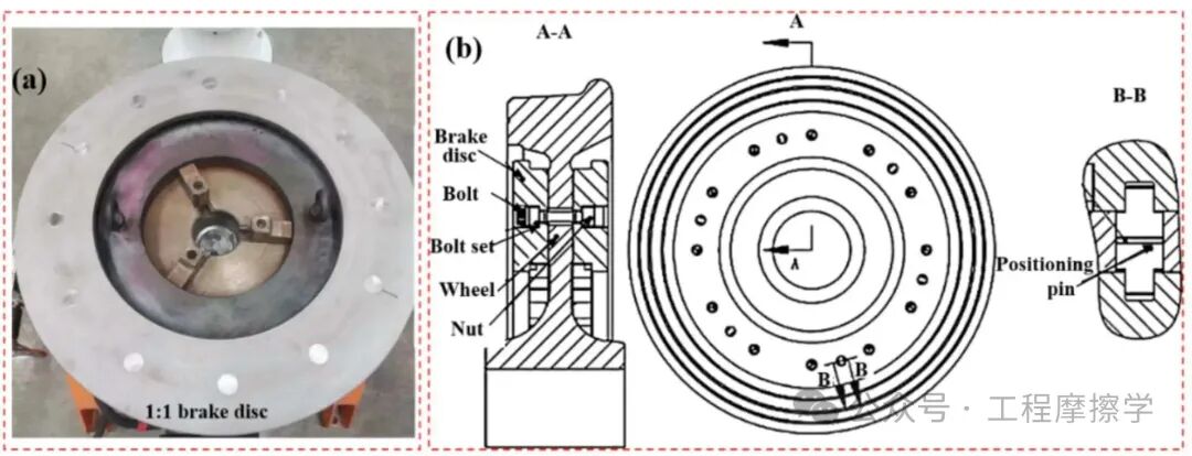 图2:制动盘实物图及制动盘与车轮装配示意图:(a)制动盘实物图,(b)装配示意图。