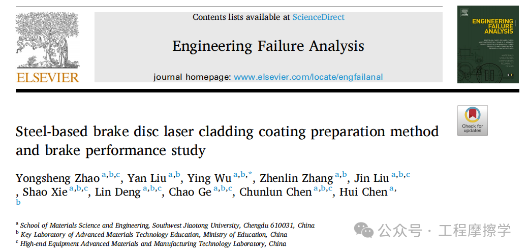 第一作者:Yongsheng Zhao; 西南交通大学;