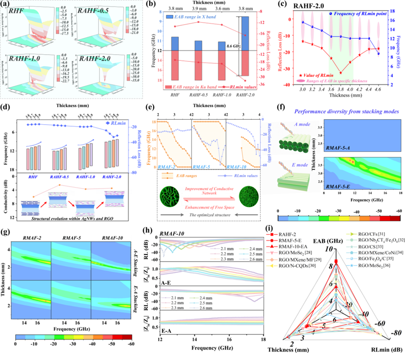 图2 基于自由空间调控的仿生石墨烯基纤维吸波性能
