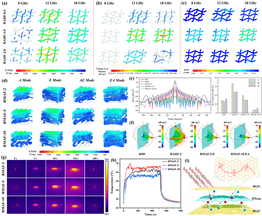 图3 仿生石墨烯基纤维的电磁性能仿真与热管理性能研究