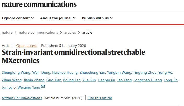 基于MXene的系统级电子器件(MXetronics),能够集成传感、储能、通信等多种功能,在下一代医疗健康监测、人机交互、柔性机器人等领域具有不可替代的应用价值,尤其是可穿戴医疗设备,亟需兼具高稳定性、全向可拉伸性和多功能集成的电子器件,以实现与人体皮肤的无缝贴合和复杂运动下的精准监测。