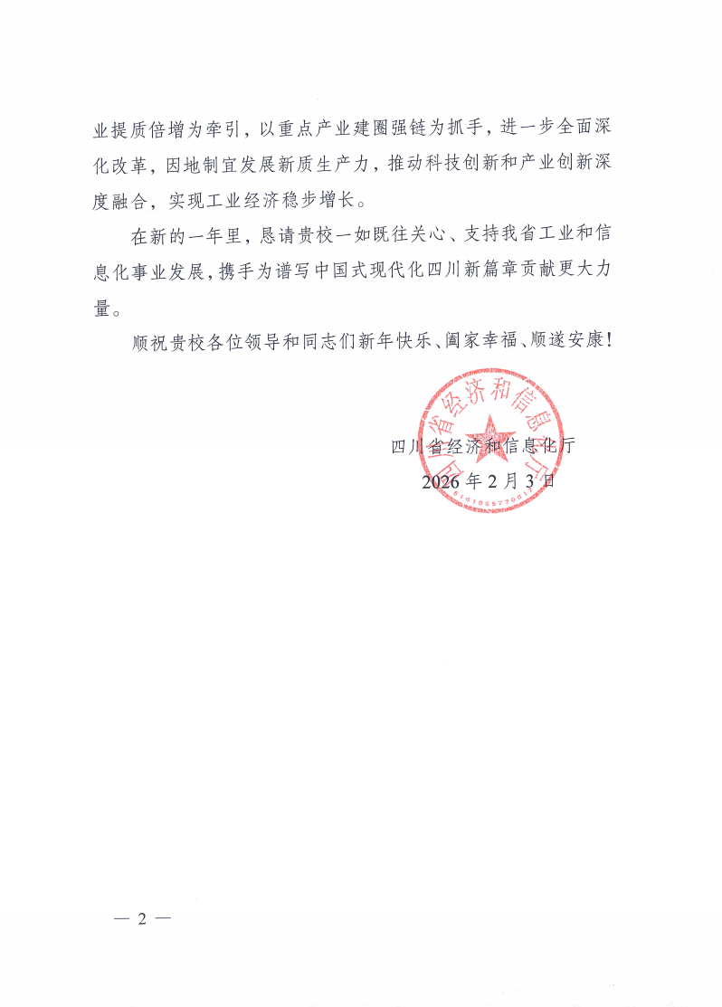 近日,西南交通大学再次收到四川省经济和信息化厅发来的感谢信,对我校材料科学与工程学院、钒钛稀土交通材料研究中心徐轶教授团队在我省钒钛、稀土、先进材料等绿色低碳优势产业高质量发展等方面作出的积极贡献表示感谢。